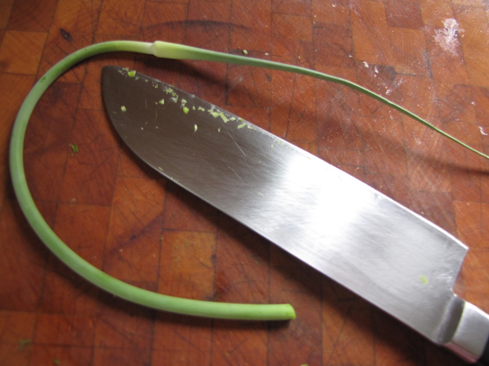 Thinly slice the scapes and then mince the slices.